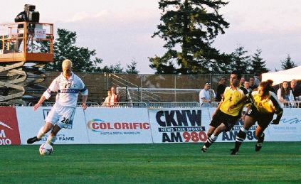 There was alot going on at Swangard Stadium as the Whitecaps prepared to take on their Canadian rivals Toronto Lynx. First of all, the game would be broadcast on national television. Secondly, the Whitecaps would be welcoming some key players back from injury. Thirdly, the memory of a tight 1-0 loss to the same Lynx a little while ago would be brewing in the players' heads. So the recipe was all there, including another gorgeous evening for soccer in Vancouver. It's too bad that the game never really lived up to the billing, as the home team had to be content with a share of the points in a rather drab 1-1 draw.