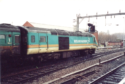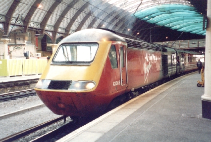 Virgin trains HST power Car No.43008 ticks over awaiting to depart York, 13/2/02.