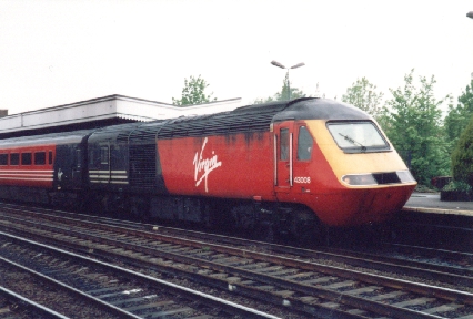 Virgin Trains HST No. 43008 at Leamington Spa station, 17/05/01.