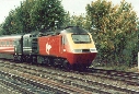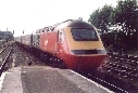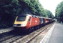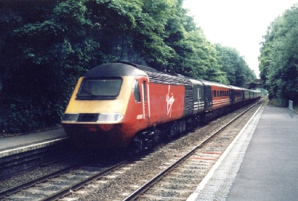 Virgin trains HST No. 43060 at the rear of 43159, passes through Barnt Green, 27/07/01.