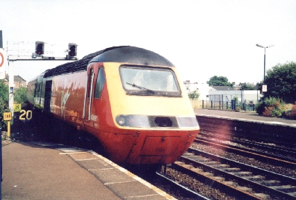 Virgin trains HST No. 43063 'Maiden Voyager' arrives at Leamington Spa, 10/10/01.