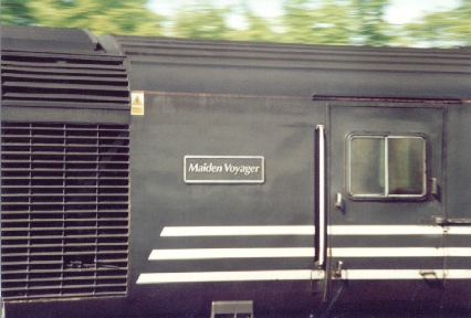 Virgin HST power car No. 43092 shows it nameplate at Leamington Spa, 8/11/01.
