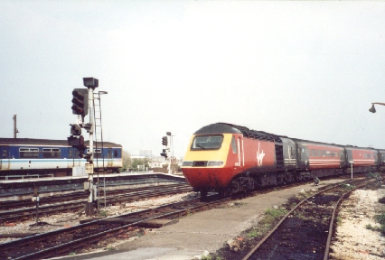 'Virgin trains' HST power Car No.43100 arrives at Bristol Temple Meads, 03/04/02.