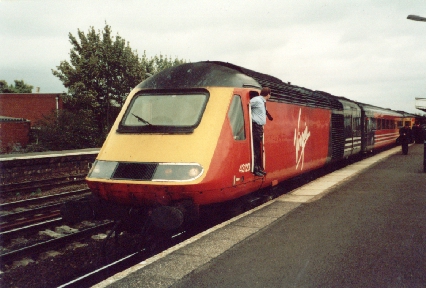 Virgin trains HST No. 43123 awaits to depart Leamington Spa, 10/10/01.