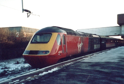 Virgin trains HST power car No. 43102 shows it's nameplate at Birmingham International, 31/12/01.