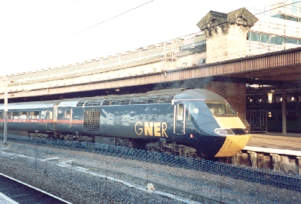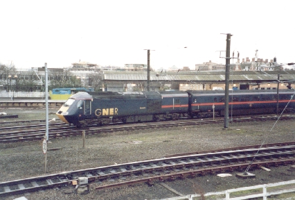 GNER HST power car No. 43112 'Doncaster' departs York as seen from the National Railway Museum, 13/2/02.