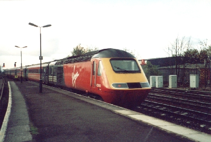 Virgin trains HST power car No.43100 departs Leamington Spa, 08/11/01.