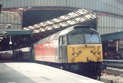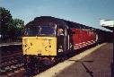 Dead in tow behind 47739's train 47769 at Leamington Spa, 10/10/01.