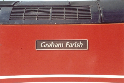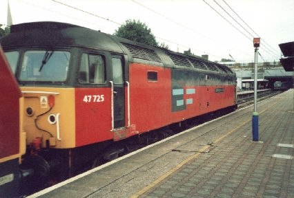 Class 47/7 No. 47725 Show its nameplate at Ealing Broadway, 25/10/01.
