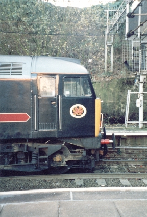 Fragonset Class 47/7 No.47709 shows it's nameplate at Coventry, 31/12/01.