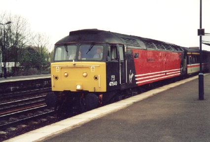 Virgin Trains, Class 47 No. 47840, 'North Star' arrives at Leamington Spa, 03/05/01.