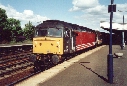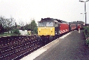 Virgin Trains Class 47 No. 47847 arrives at Leamington Spa station, 10/05/01.