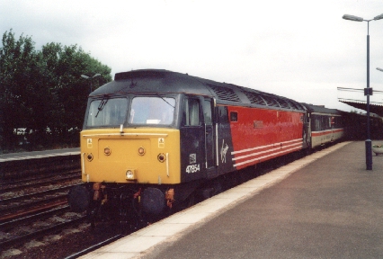 Virgin trains Class 47/8 No. 47854 'Womens Royal Voluntary Service' awaits to depart at Leamington Spa, 19/7/01.