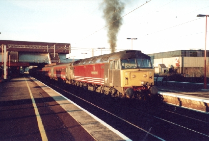 Virgin trains class 47/8 No. 47839 arrives back from Coventry at Rugby, 31/12/01.