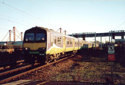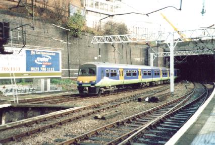 Sliverlink County EMU No. 321404 departs Birmingham International, 8/12/01.