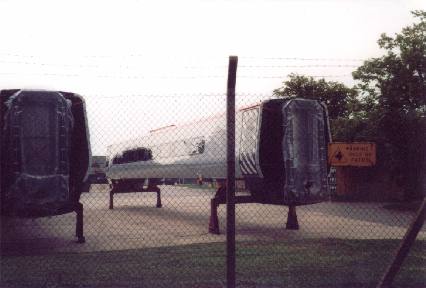 Part built Virgin trains 'Pendolino' tralier at Ashchurch army base, 25/8/01.