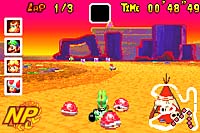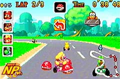 Mario Kart for GBA is a fantastic game. It takes after the original Mario Kart for the super Nintendo. It's filled with secret levels that you can win, loads of weapons to help you win races, and a wide variety of characters from bowser to yoshi. Over all, we rate this game an 8 out of 10. We recommend it for ages 8 and up. |