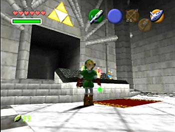 The Sacred Triforce Environments in Ocarina of Time are incredibly realistic. Here, an adult Link prepares to venture out into a Hyrule ravaged by Ganondorf's evil hand. |