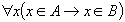 Ejemplo 1. Sean X e Y dos conjuntos, sea f una aplicación de X en Y y sean A y B dos subconjuntos de X. Admitamos como premisas que: (1), f es inyectiva y que, (2), f(A) = f(B). Vamos a concluir que A = B. Para ello es suficiente demostrar que A Í B, ya que para la otra inclusión basta intercambiar los papeles de A y B. Hay que probar pues que