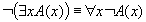 Si A y B son fbfs, en el caso de que Ø (A ® B) se escribe A Þ B y se dice que A implica B; en particular, extendiendo el ejemplo anterior, " x A(x) Þ $ x A(x), mientras que si Ø (A « B) se escribe A º B o A Û B, y se dice que A es equivalente a B. Por otro lado, es obvio que si A y B son dos fbfs que no contienen ninguna variable libre, persisten las equivalencias de la lógica proposicional; en particular, Ø Ø A º A, A ® B º Ø A Ù B, A Ú B º B Ú A, (A ® B) Ù (B ® A) º A « B, etc.