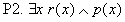 Ejemplo 5. Sea p(x) = x es múltiplo de 2, y sea q(x) = x es múltiplo de 3. La fórmula " x (p(x) « q(x)) no es válida siempre, pero " x p(x) ® $ x p(x) es verdadera en cualquier universo no vacío y para cualquier p.