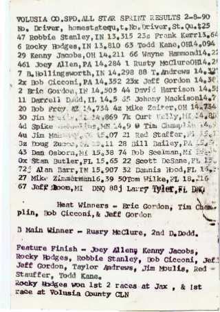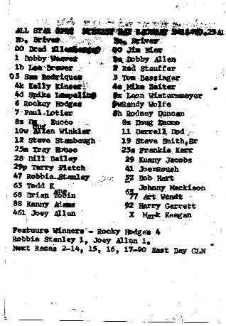Lineup card from the All Stars at Eastbay Raceway----1990