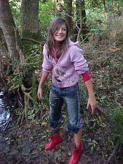 Detta är bilder på när vi alla är smutsiga och blöta. Egentligen skulle vi gå till bäcken och håva. Men jag (Ena O) ramlade i bäcken och här kan ni se en bild på mig. Sen hoppade alla i och badade. Sen fotades vi! |