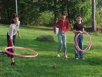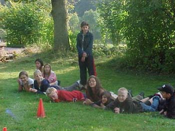 ![]() Klassen hade sjukamp. Alla tävlade ensamma på olika stationer, som t ex fotbollsbowling, pingis, kasta rockringar runt koner... Vi hade själva planerat stationerna. |
