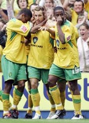 Picture- The Norwich players celebrate Huckerby's
