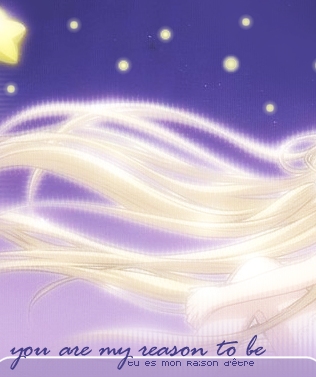 This layout features Chii from Chobits. Raison d'être is one of the Chobits ending themes, so I used it as a general theme for this design. ^_^ Raison d'être is French for "Reason of Being." (translated roughly XD) The line at the bottom of the layout "when you look at the stars, do you only see me?" is just something that popped into my head when I was looking at this picture, hehe.