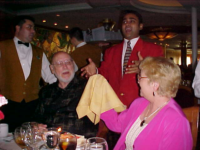 Below, the Headwaiter congratulates Mel and