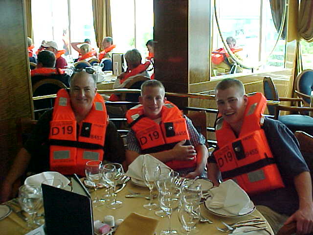 our muster stations practicing a drill just in case we were to sink.