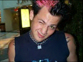 Expressing what I like in long overly-wordy run-on sentences with lots-o-hyphens and Benji Madden and The rest of Good Charlotte and The Suicide Machines and Chevelle and Coffee and Starbucks and Squirrels and Animals-In-General and Vegetarianism and The word 'Antiestablishmentarianism' and RantNotebookDotCom and The Vamp Girl and Vampy Vampquels from the amazing mind of Sarah 'Vamp Girl' Crosby and The Osbournes and My cat and Johnny the Homicidal Maniac and Happy Noodle Boy and Me First and the Gimme Gimmes and Being the 'Bad Kid' and swearing at moving cars and arguing with inatimate objects and hair dye and Paul from 11 Mintues Away and my 'quasi-owned by me' dogs and my chinchilla and random scary comic books from Hot Topic and the word 'meh' and V.C. Andrews books and Stephen King books and peaches and noodles and my 'Ugly-On-Wheels' car and Reese's and Fight Club and Queen of the Damned and Queens of the Stoneage and Audioslave and Tsunami Bomb and New Found Glory and More Good Charlotte and Nirvana and Metallica and Sum 41 and Rancid and NOFX and Cupcake Pink hair dye and the X-Men Movies which makes me sound like one of those comic book-obsessed people and online comic strips at nothingnice.com and The Bored and my parents' cars which are IRoc-Z Camaros with one that's black and one that's red and The Ataris and Alkaline Trio and AFI and Dillinger Four and Antiflag and Flogging Molly and The Donnas and Home Grown and Finch and Blink 182 and Less Than Jake and Bad Religion and MxPx and Sugarcult and Guns n Roses and The Dead Kennedys and The Vines and The Used and Allister and The All-American Rejects and Diet Dr. Pepper and walking bare-foot on gravel and playing piano and playing the drums and writing really long things like this that no one will ever read.