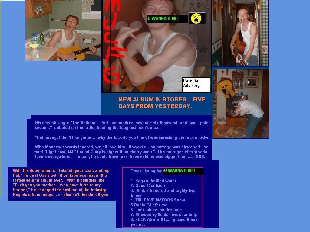Here we have Matthew James Cook... He has revolutionized the industry... Starting in 1945(??) He made music history with his awesome punk Rock band, MJC Found Glory...