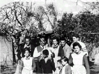 ......la familia, en el patio de la casa de Licantén, por ahí por 1953-1954