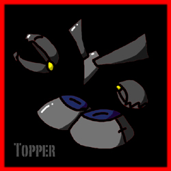 Topper is Redscar's prized henchman and own ingenious creation. Topper, the chopper bot was designed with a steel platted body capable of transforming from his normal state into 4 destructive machines, originally designed to shred all the healthy crops into dust. Using grinders, propellors and chompers, Topper also proves himself to be a incriminating foe in battle with some mighty sharp corners. The Poodey gang has discovered that it is most useful to flip the bot upside down and immobilize him. But you may guess he doesn't like that too much. Topper is Redscar's most loyal fighter. And no he wasn't just programmed that way he has a mind of his own. It's probably the fact that Redscar threatens to soak him in peroxide if he doesn't obey him. But that only happened once. So far.