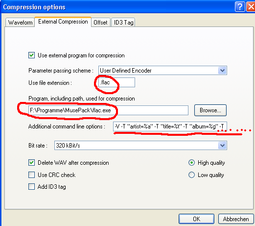 2. Browse in your program directory for flac.exe. This step 2. tells EAC, where EAC can find the external flac encoder.