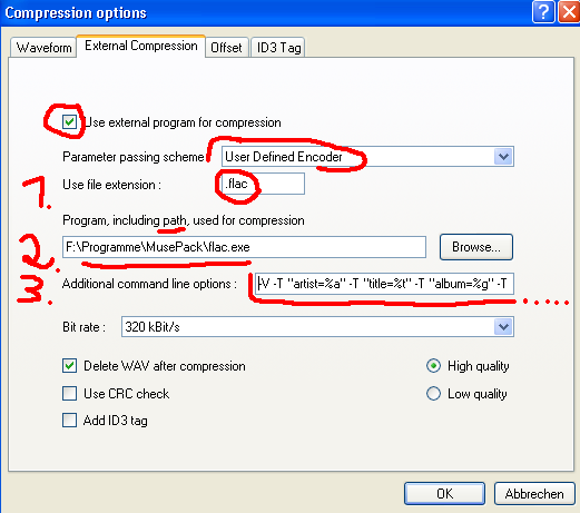 2. Browse in your program directory for wapet.exe. (Get wapet here.) This step 2. tells EAC, where EAC can find the wapet utility (not flac.exe as in picture above).