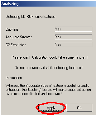 EAC will now detect your drive's capabilities and display the results after some time: