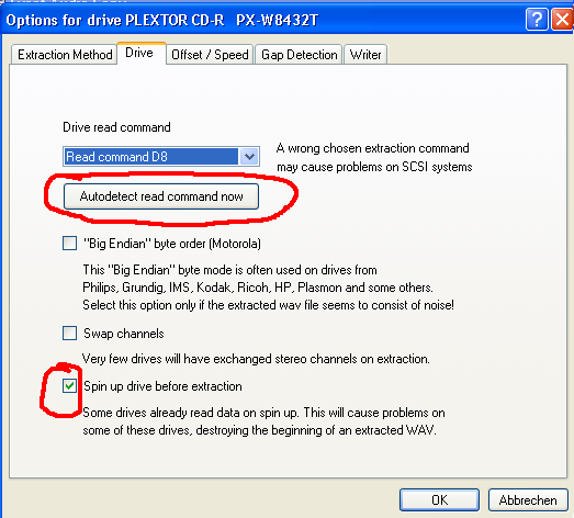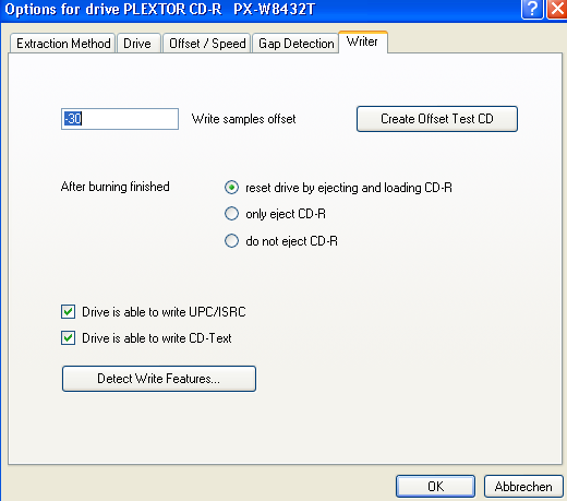For perfect archive copies of your CDs, using the Offset Correction feature is also recommended. Unfortunately, it is a rather complicated feature, and finding your offsets can sometimes be difficult. After a firmware update of your drive or writer, you should check your offsets again, as they might have changed.