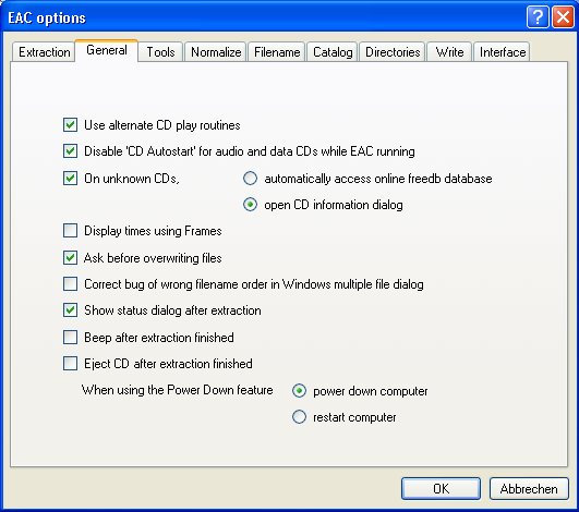 Lock drive tray during extraction - this option doesn't usually make much difference, but it can be a nuisance if enabled; if EAC crashes for some reason and this option is enabled, the CD drive will stay locked until the next reboot.