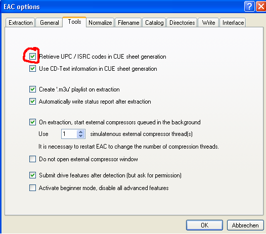 Retrieve UPC/ISRC codes in CUE sheet generation - for CDs that carry this information (many don't), enabling this option is the only way to make an exact copy.