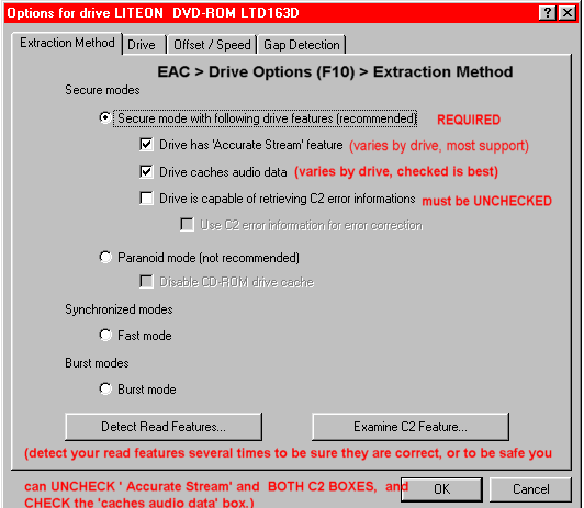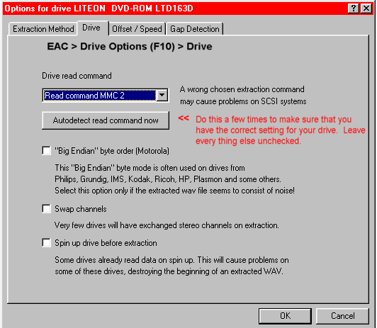 | Drive | "Autodetect Read Command Now" - do it a couple times to be sure |