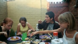 Group photo of Kay, Fran, Simon and Vikki eating chinese:)