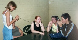 Group photo of Kay, Simon, Fran and Vikki and I can't remember what we were doing at the time.