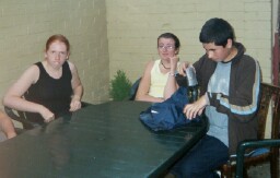 Kay, Fran and Simon on my patio:)