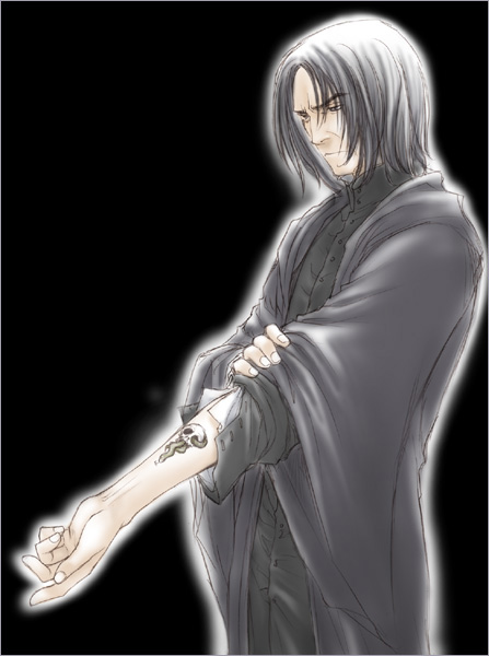 “Fine,” Severus rolled up his sleeve and thrust his arm towards Morgan, “here, see what sort of man I am. Look well on that mark, it is a symbol of who I am, a murderer, a rapist, a man with a dark past and a dark future, a man…”