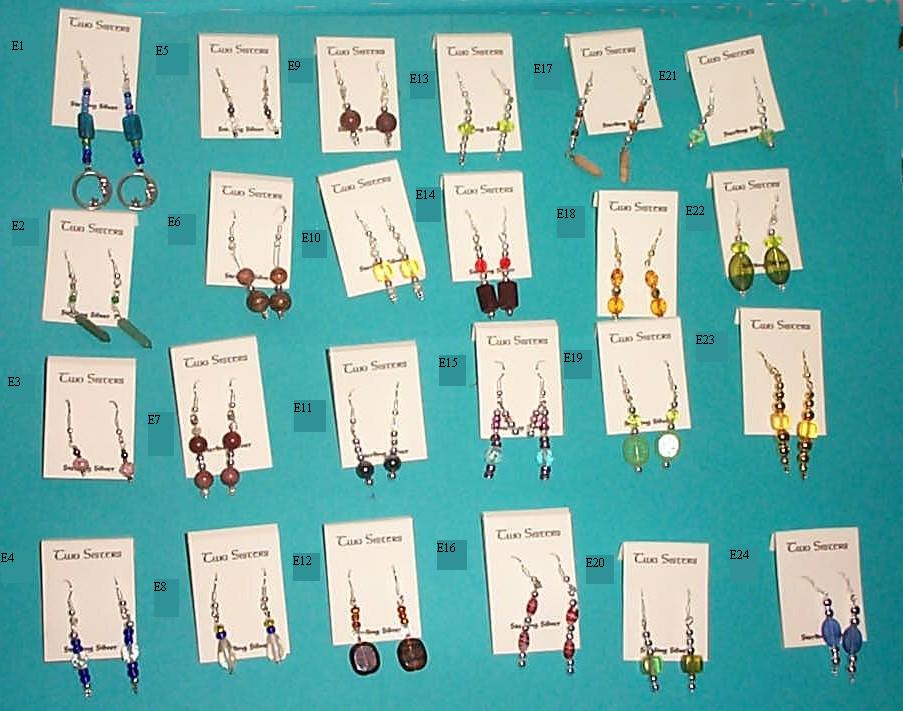 Click on the link below the image that matches with the earring set you would like to see. Please refer to the E# of the desired earring set(s) when ordering.