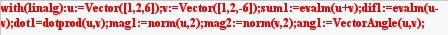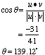 ![]() And we can still find the angle between the vectors using our dot product formula: