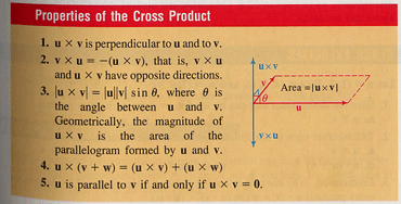 IV. The Area of a Parallelogram One of the properties of u x v is that its magnitude is equal to the area of the parallelogram defined by u and v; for our example vectors we would then haveAnd this is easily confirmed as the area of the parallelogram: